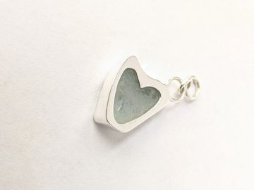 Palest aqua seaglass piece set into fine silver. Made as a keyring for someone who wears little jewellery but loves seaglass.
